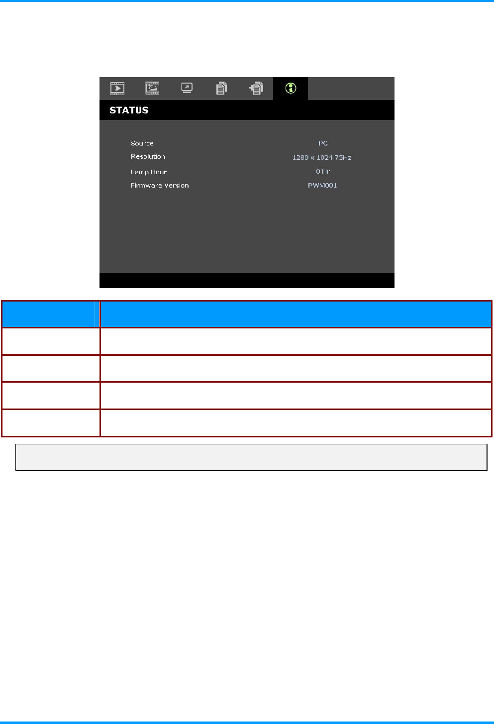 Firmware Version  Displays the firmware version of the projector.