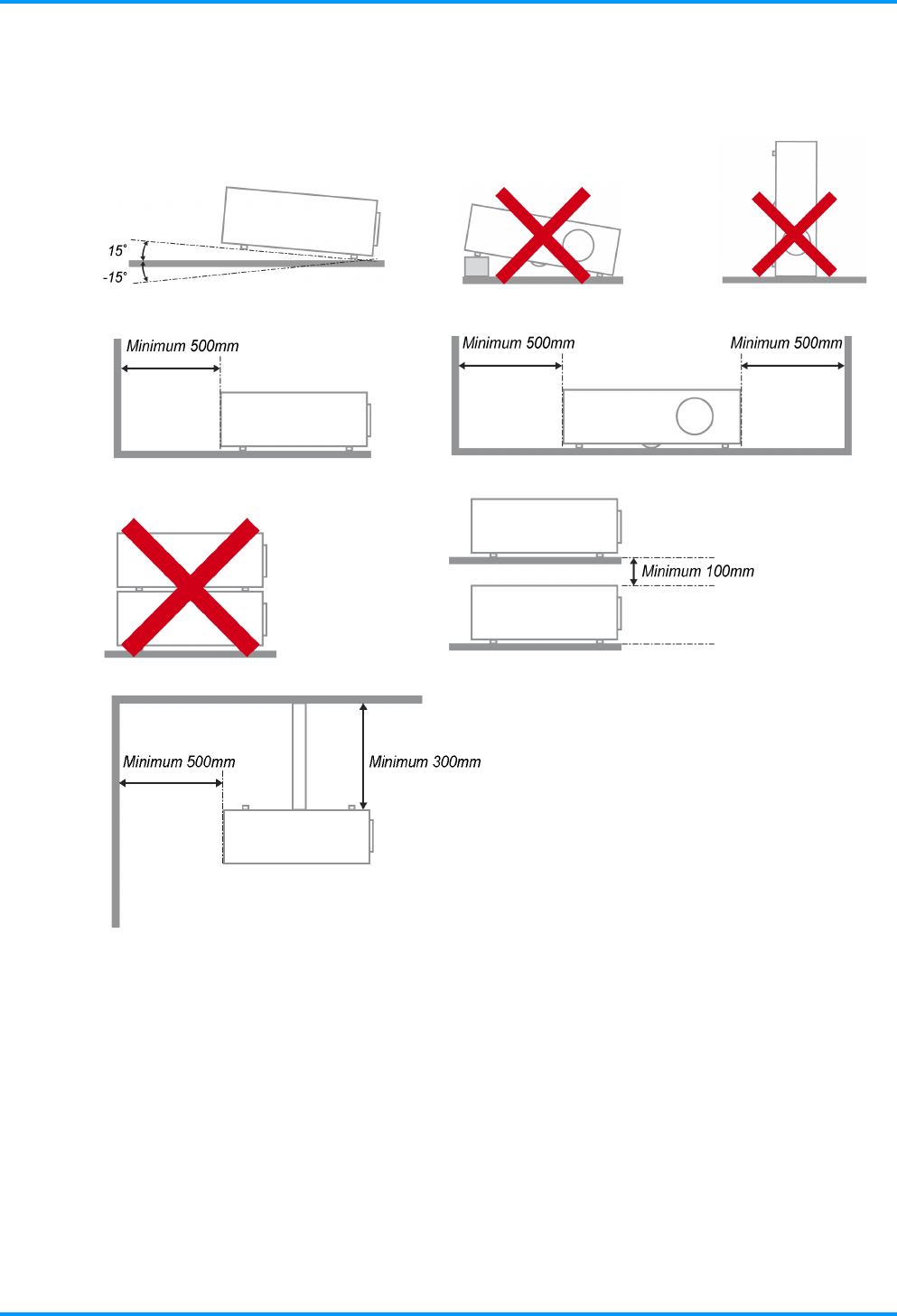 The tilt angle of the projector should not exceed 15 degrees, nor should the projector be installed in