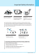 Important Safety Information Do not overload the wall outlet or extension cords. Overloading can result in fire or electric shock. Do not insert anything through the openings in the unit, where they can touch dangerous voltage points or damage parts. Never spill liquid of any kind on the Monitor. Bend antenna cable between inside and outside building to prevent rain from flowing in. - This may cause water damaged inside the Monitor and could give an electric shock. Ground outdoor antennas.