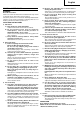 English 4. Inspecting the carbon brushes For your continued safety and electrical shock protection, carbon brush inspection and replacement on this tool should ONLY be performed by a Hitachi Authorized Service Center. 5. Service and repairs All quality power tools will eventually require servicing or replacement of parts because of wear from normal use. To assure that only authorized replacement parts will be used, all service and repairs must be performed by a Hitachi Authorized Service Center, ONLY.