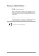 Warnings and Certifications FCC (applies in the U.S. and Canada) This device complies with Part 15 of FCC Rules. Operation of this device is subject to the following two conditions: 1) this device may not cause harmful interference, and 2) this device must accept any interference received, including interference that may cause undesired operation. Warning: Use only shielded cables to connect I/O devices to this equipment.