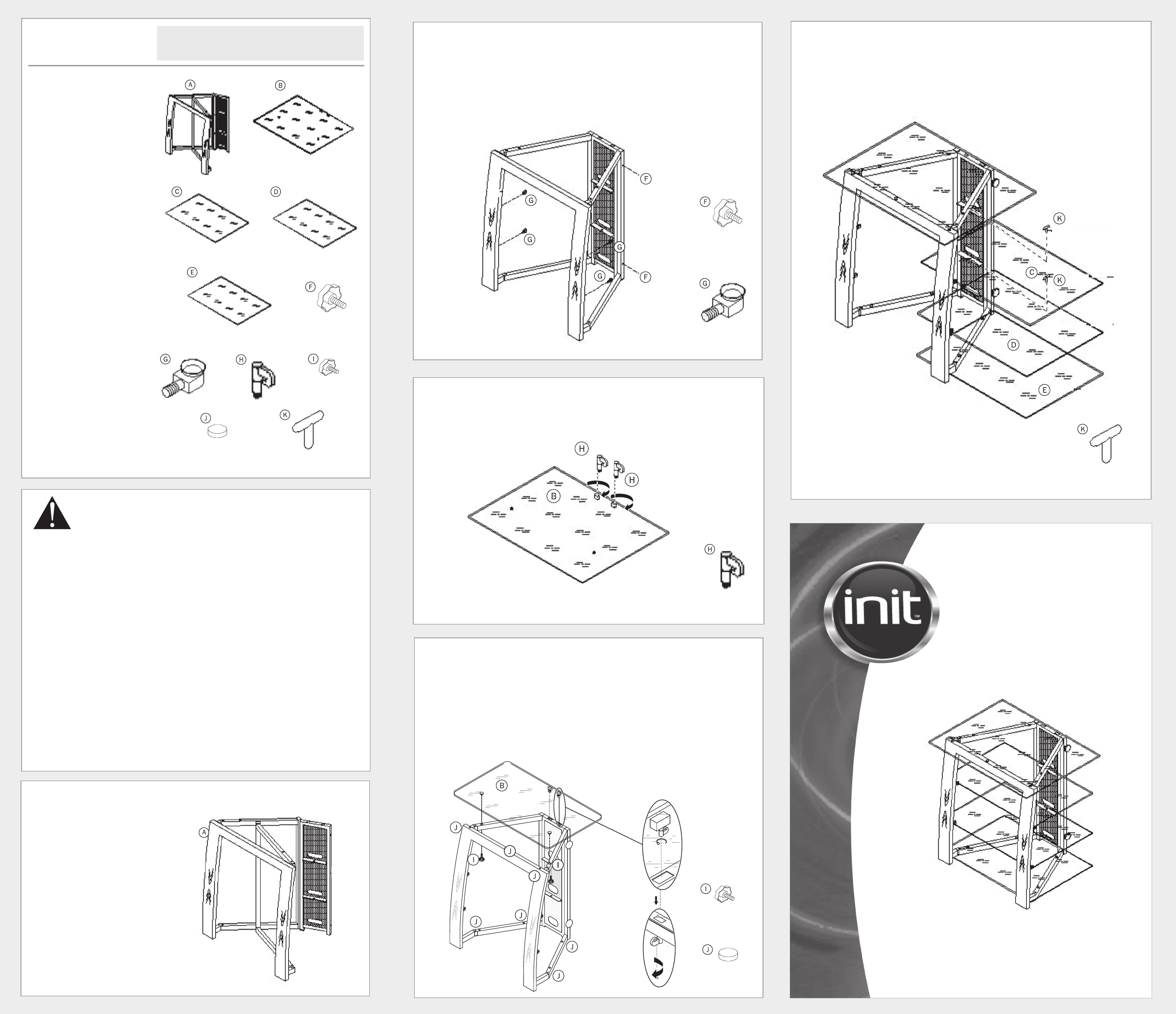 Attach the rubber shelf pads (J) to the steel frame. Turn the top shelf over and align