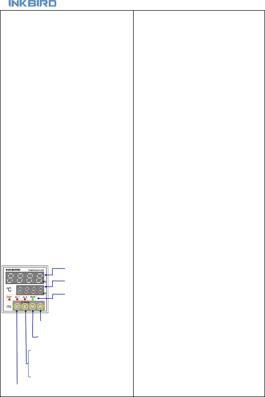 “INCREASE” key: when setting value, press“︽” key to increase changes, run self-tuning with the middle value of setting values.