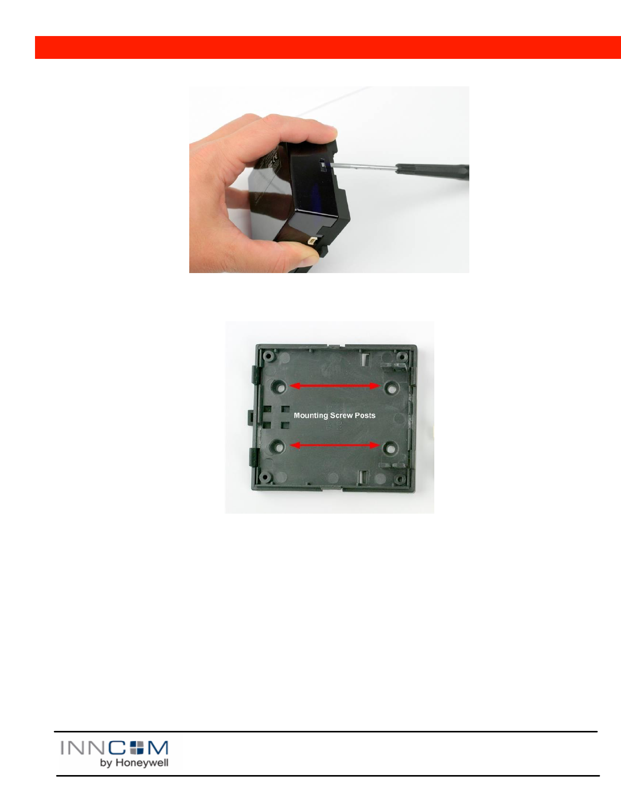 enclosure. Using a flat screw driver, lift the top housing away from the snap tangs on the bottom housing.
