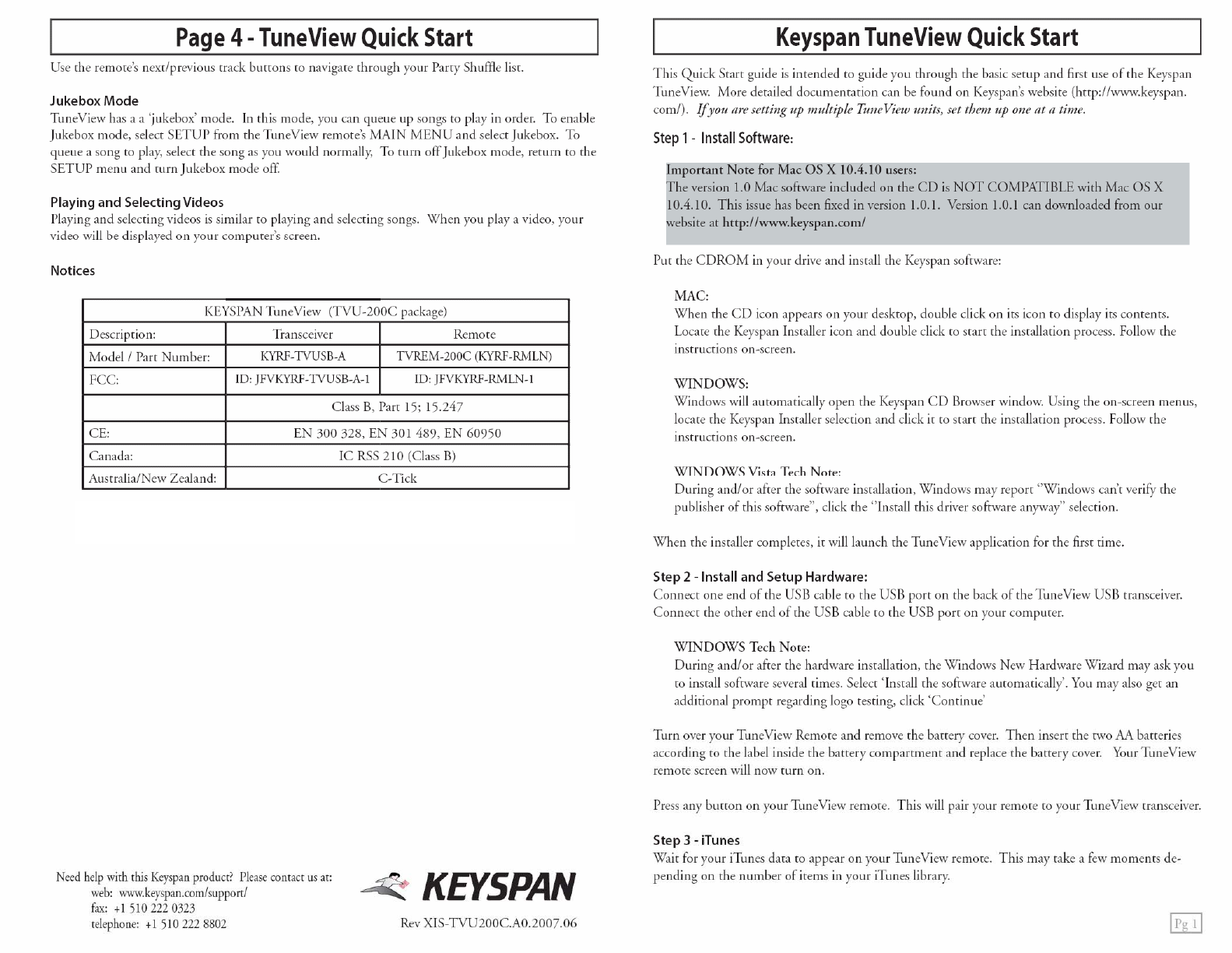 Page 2 - TuneView Quick Start Page 3 - TuneView Quick Start About iTunes Snapshots: The TuneView software takes a ‘snapshot’ of your iTunes library. This happens the first time you launch iTunes after rebooting.