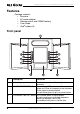Insignia NS-B3113 Minichaîne portative avec station d'ac- Panneau arrière # Description Fonction 1 Antenne FM L’antenne télescopique permet d’améliorer la réception FM. 2 Touche OUVRIR/FERMER Permet d’ouvrir ou de fermer le plateau du CD. 3 Prise d’entrée CC Insérer le petit connecteur de la prise d’alimentation CA ici. 4 Prise ENTRÉE LIGNE Brancher le câble d'une source audio externe sur cette prise d’entrée pour écouter le son à travers la minichaîne. 34 www.insignia-products.