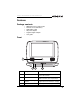 Insignia NS-SKPDVD Portable DVD Player Features Package contents • • • • • • DVD player with 7" LCD monitor Remote control with battery Audio/Video cable AC power adapter Cigarette lighter adapter User guide Front 1 2 3 4 # Component Description 1 Remote sensor Receives signals from the remote control. Do not block. 2 OFF/ON switch Slide to the right to turn on your player, or slide to the left to turn off your player. 3 Power/battery charge indicator Lights green when your player is on.
