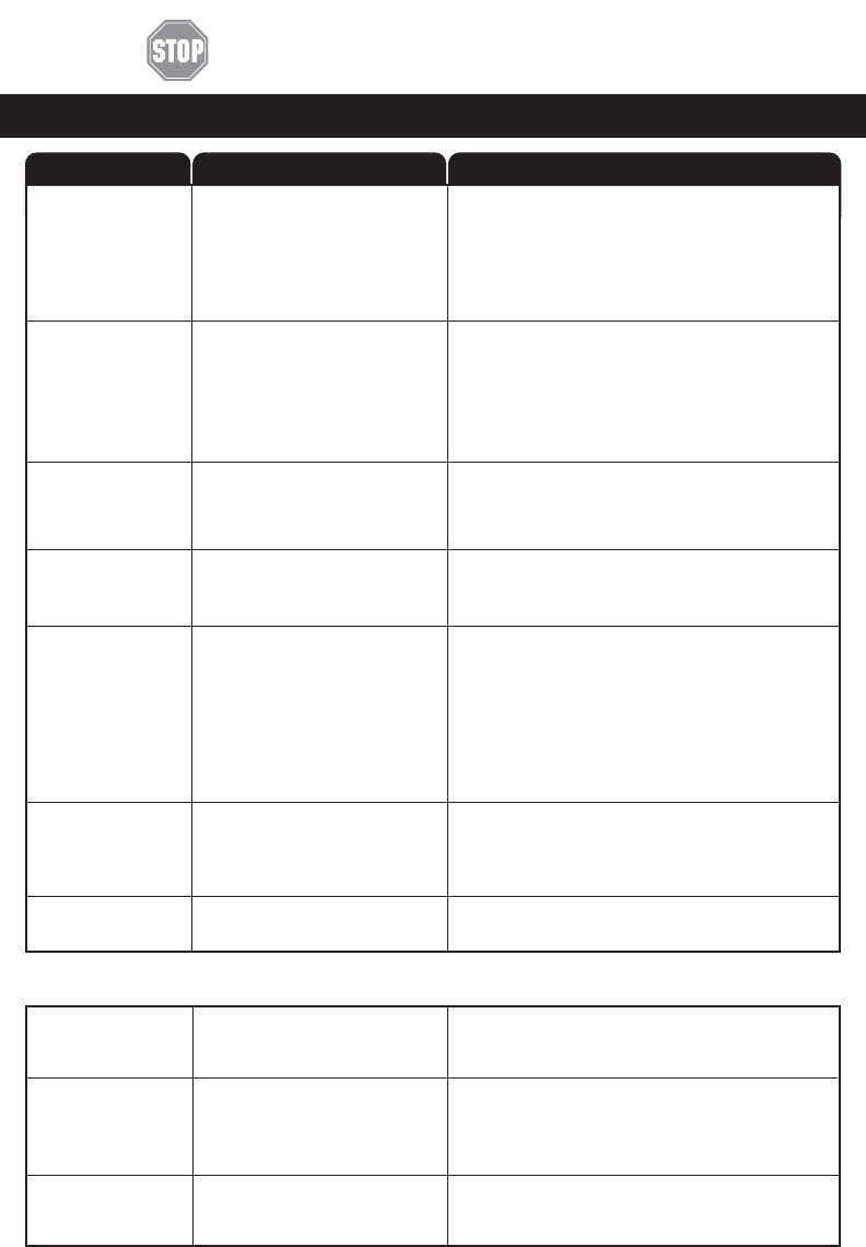 • Outlet tube is blocked. • Check that outlet tube is not kinked, twisted or pinched.