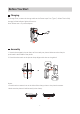 Before You Start Charging To charge Flow, connect the charge cable to the Power Input Port (Type-C). When Flow is fully charged, all the indicator lights will turn on. Note: Please use a 5V power adapter. Assembly 1. Stretch the magnetic phone clamp to fit around your phone. Make sure the clamp is positioned in the middle of the phone. 2. Check that the mark on the phone clamp aligns with that on the gimbal. Notes: • Check that the camera icon on the side of the clamp points to the phone's camera.