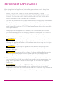 IMPORTANT SAFEGUARDS 31. Do not tamper with any of the safety mechanisms, as this may result in injury or property damage. 32. Do not use the appliance in electrical systems other than 120 V/60 Hz for North America. Do not use with power converters or adapters. 33. This appliance is NOT to be used by children or by persons with reduced physical, sensory, or mental capabilities. Close supervision is necessary when any appliance is used near children and these individuals.