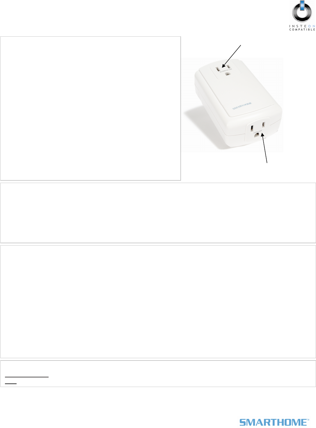 Smarthome Limited Warranty – Smarthome warrants to original consumer of this product for a period of 2 years from date of purchase, this product will be