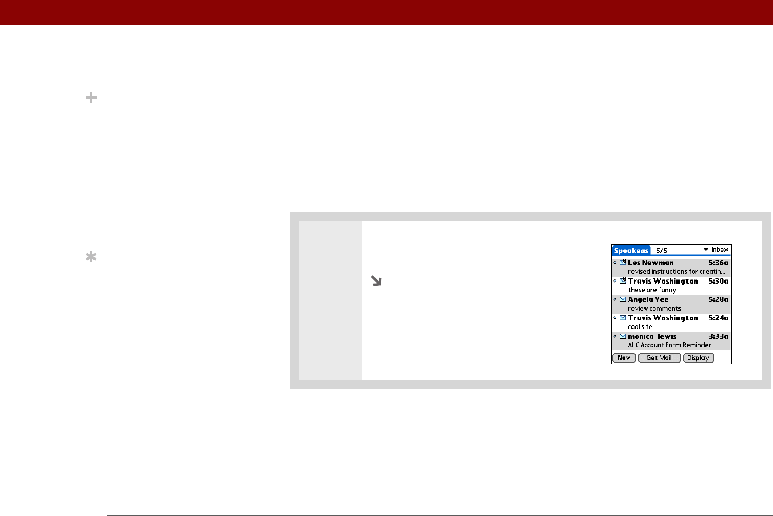 In the message list, a paper clip on a message’s envelope icon indicates that the message has an