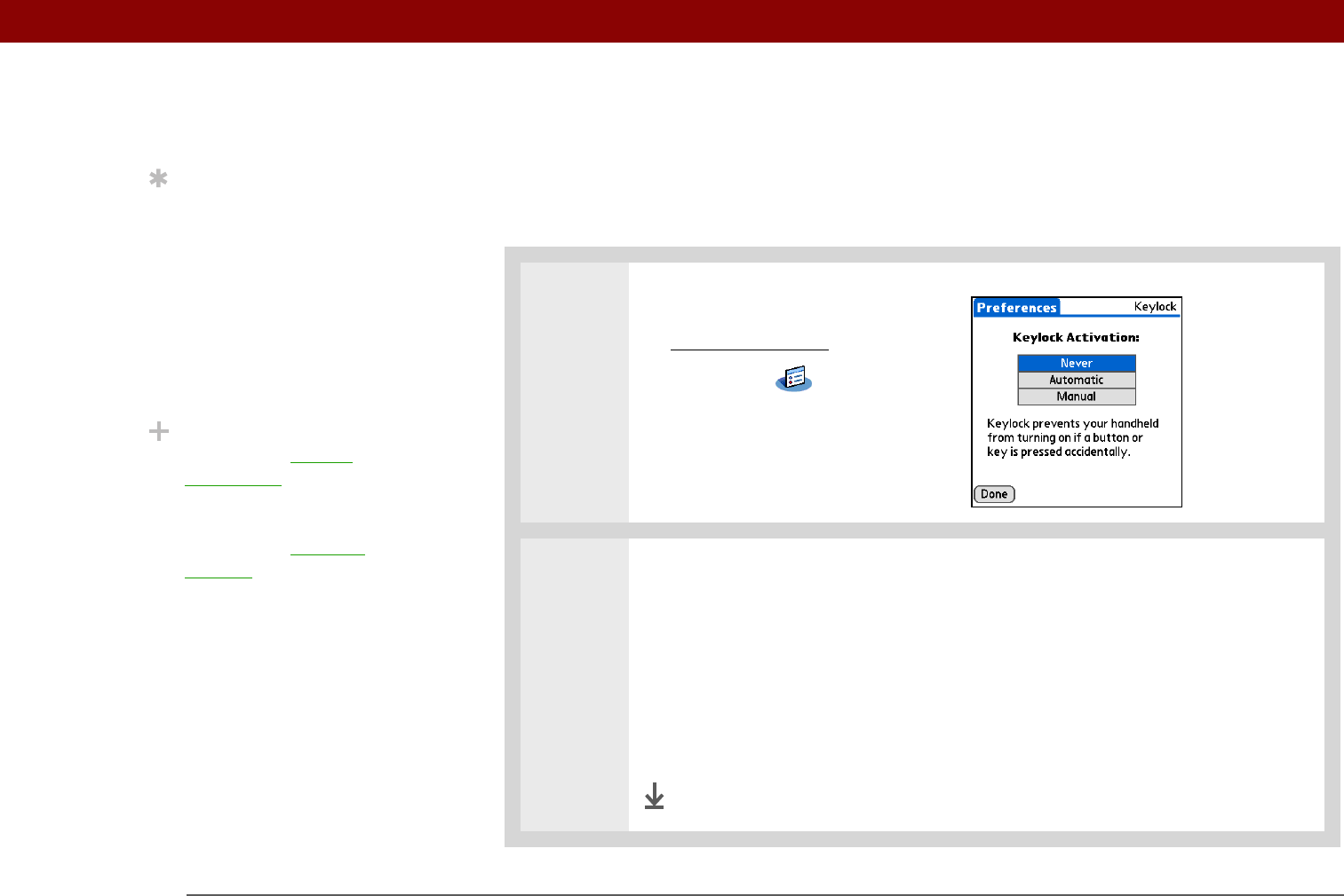 Automatic Keylock turns on automatically when you turn off your handheld or