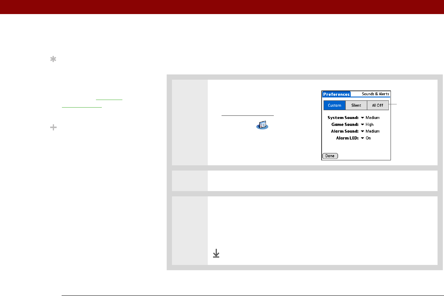 Alarm Sound pick lists and select the volume level for each sound; then select