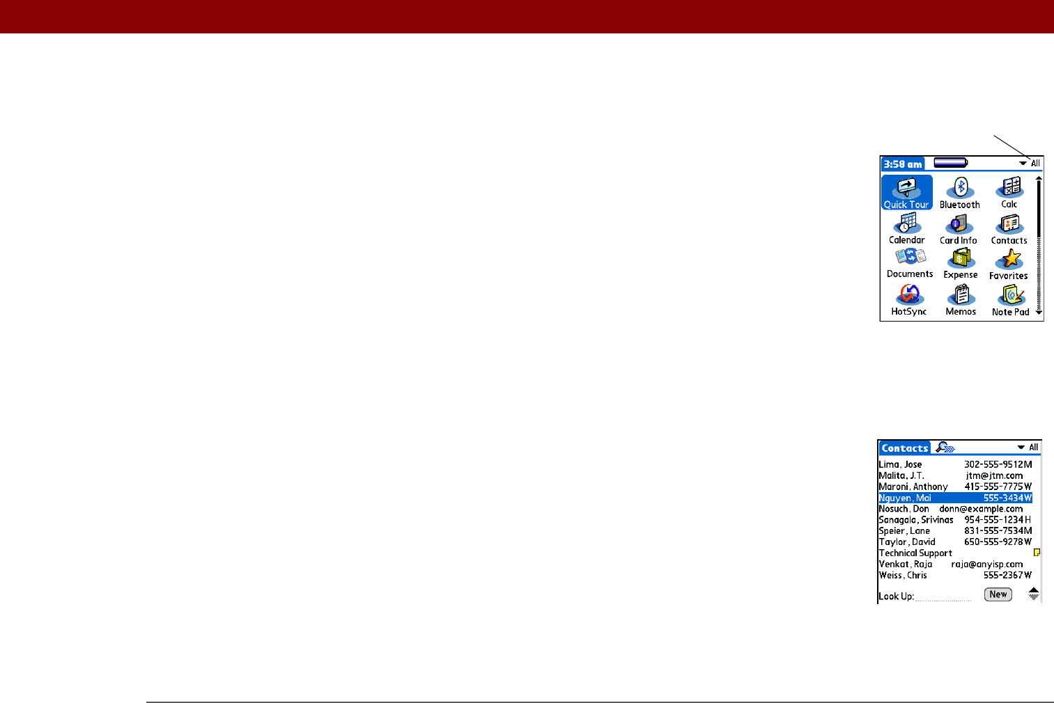 In list screens, select and move between entries such as notes, memos, contacts, or photos.