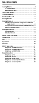 TABLE OF CONTENTS Installing Batteries . . . . . . . . . . . . . . . . . . . . . . . . . . . . . . . . . . . . . . . 3 To Install Batteries: . . . . . . . . . . . . . . . . . . . . . . . . . . . . . . . . . 3 Battery Use And Safety. . . . . . . . . . . . . . . . . . . . . . . . . . . . . . . 3 Features and Functions . . . . . . . . . . . . . . . . . . . . . . . . . . . . . . . . . . . 4 Programming a Device . . . . . . . . . . . . . . . . . . . . . . . . . . . . . . . . . . . . 5 Searching for Your Code . .