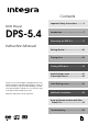 Contents Important Safety Instructions ............2 DVD Player DPS-5.4 Introduction .........................................7 Connecting the DPS-5.4 ...................17 Instruction Manual Getting Started ..................................23 Playing discs .....................................28 Viewing JPEG discs ..........................39 Audio Settings menu ........................41 Video Adjust menu............................42 Thank you for purchasing the Integra DPS-5.4 DVD Player.