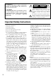 WARNING: TO REDUCE THE RISK OF FIRE OR ELECTRIC SHOCK, DO NOT EXPOSE THIS APPARATUS TO RAIN OR MOISTURE. WARNING AVIS RISK OF ELECTRIC SHOCK DO NOT OPEN RISQUE DE CHOC ELECTRIQUE NE PAS OUVRIR The lightning flash with arrowhead symbol, within an equilateral triangle, is intended to alert the user to the presence of uninsulated “dangerous voltage” within the product’s enclosure that may be of sufficient magnitude to constitute a risk of electric shock to persons.