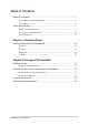 COPYRIGHT INFORMATION No part of this manual, including the products and software described in it, may be reproduced, transmitted, transcribed, stored in a retrieval system, or translated into any language in any form or by any means, except documentation kept by the purchaser for backup purposes, without the express written permission of ASUSTeK COMPUTER INC. (“ASUS”).
