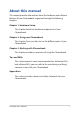 Table of Contents About this manual......................................................................................................7 Conventions used in this manual.............................................................................. 8 Typography........................................................................................................................ 8 Safety precautions......................................................................................................