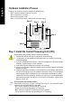 Socket Actuation Lever English Step 1-1: CPU Installation Figure 1. Pull the rod to the 90-degree directly. Figure 2. Locate Pin 1 in the socket and look for a (golden) cut edge on the CPU upper corner. Insert the CPU into the socket. (Do not force the CPU into the socket.) Then m ove the socket lever to the locked position while holding pressure on the center of the CPU. Step 1-2: CPU Cooling Fan Installation Figure 1.