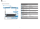 Getting started ► For 15 inch models Number/Name Microphone 1 2 Camera indicator light Illumination sensor 3 4 Camera 5 LCD 6 7 Operating status LED 8 9 Power button 10 8 Description • You can use the built-in microphone. • This indicates the camera operating status. • The sensor detects the ambient light. • Using this camera, you can take still pictures and record video. • The screen’s images are displayed here. • Shows the operating status of the computer.