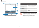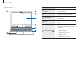 Getting started Bottom view Number/Name 1 Fan vents • If the vents are blocked the computer may overheat. Avoid blocking the vents as this may be dangerous. • Provides power to the computer when not connected to an AC adapter. Internal battery • To remove or replace the internal battery, take it to a Samsung Service Center. You will be charged for this service. Speaker • Sound is emitted from the speakers.