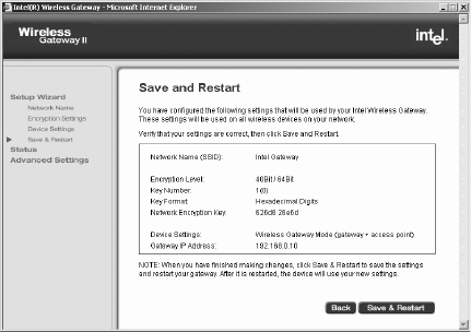Saving settings and restarting your gateway