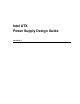 Intel ATX Power Supply Design Guide Version 0.9 1. Scope This document outlines a reference ATX power supply that complies with the ATX Specification, Version 2.02 for motherboards and chassis. It is intended to provide additional power supply design information not detailed in the ATX 2.02 specification, including information about the physical form factor of the power supply, cooling requirements, connector configuration, and pertinent electrical and signal timing specifications.