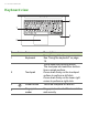 - Your Acer notebook tour Keyboard view 3 1 4 2 # Icon Item Description For entering data into your computer. See "Using the keyboard" on page 14. Touch-sensitive pointing device. The touchpad and selection buttons form a single surface. Press down firmly on the touchpad surface to perform a left click. Press down firmly on the lower right corner to perform a right click. 1 Keyboard 2 Touchpad 3 Power button Turns the computer on and off.