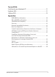 COPYRIGHT INFORMATION No part of this manual, including the products and software described in it, may be reproduced, transmitted, transcribed, stored in a retrieval system, or translated into any language in any form or by any means, except documentation kept by the purchaser for backup purposes, without the express written permission of ASUSTeK COMPUTER INC. (“ASUS”).