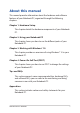 Table of Contents About this manual......................................................................................................7 Conventions used in this manual.............................................................................. 8 Icons..................................................................................................................................... 8 Typography..............................................................................................................