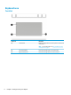 (1) TouchPad zone Reads your nger gestures to move the pointer or activate items