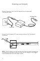 Preparing your Computer Connect the power cord to the AC adapter then to a grounded 100-240VAC outlet. DC Output Plug ADA AC PTE R Power Cord Connect the AC adapter’s DC output plug to either of the Thunderbolt connectors. 20V NOTE: The AC adapter must be used the first time the laptop is powered on. The laptop will not power on the first time if the AC adapter is not plugged into the laptop and into an AC power source.