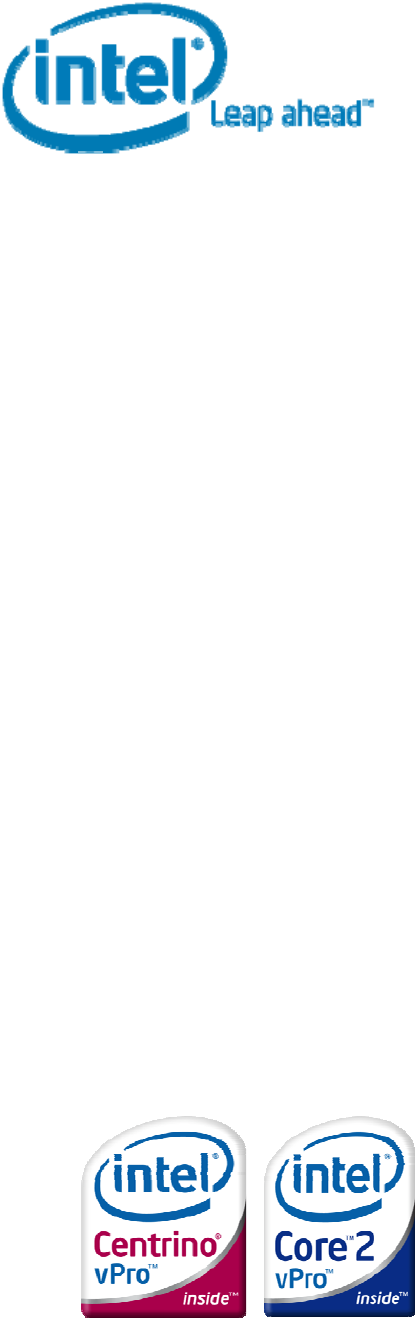 Intel® vPro™ and Intel® Centrino® Pro Processor Technology Quick Start Guide Preface This document provides the high level steps required to deploy desktop and notebook PCs with Intel® vPro™ technology. It does not provide step-by-step procedures for completing those high level steps, but instead provides links to more detailed information where such step-by-step procedures may be found.