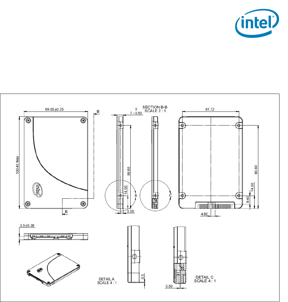 Intel SSD 520 Series. All dimensions are in millimeters.