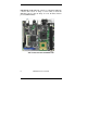 INSTALLATIONS J6: USB5/6 Port Pin Header Signal Name Pin Vcc 1 D2 D+ 3 Ground 4 Pin 5 6 7 8 Signal Name Ground D+ DVcc J7: COM2 Serial Port COM2 Signal Name DCD, Data carrier detect RXD, Receive data TXD, Transmit data DTR, Data terminal ready GND, ground Pin # 1 2 3 4 5 Pin # 6 7 8 9 10 Signal Name DSR, Data set ready RTS, Request to send CTS, Clear to send RI, Ring indicator Not Used J8: Wake On LAN Connector J8 is a 3-pin header for the Wake On LAN function.
