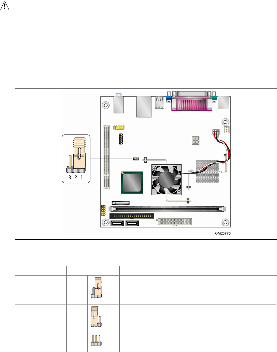 Setup program’s mode. Table 20 lists the jumper settings for the three modes: