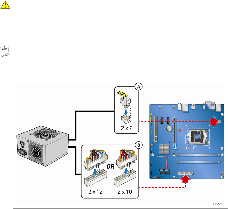 图 23 显示了电源连接器的位置。此 2 x 12 针主电源连接器(图 23 中的 B)向后兼容采用