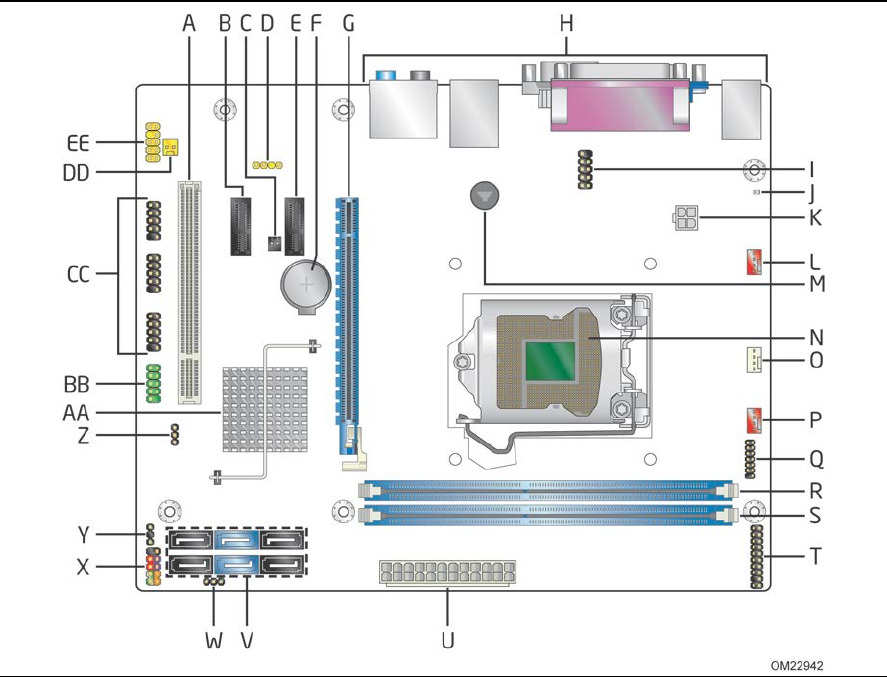 Figure 1 shows the location of the major components on Intel Desktop Board DH61BE.