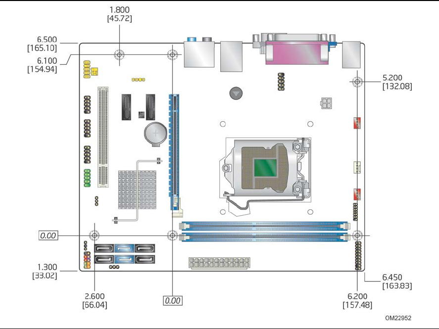 [243.84 millimeters by 198.12 millimeters]. Location of the I/O connectors and