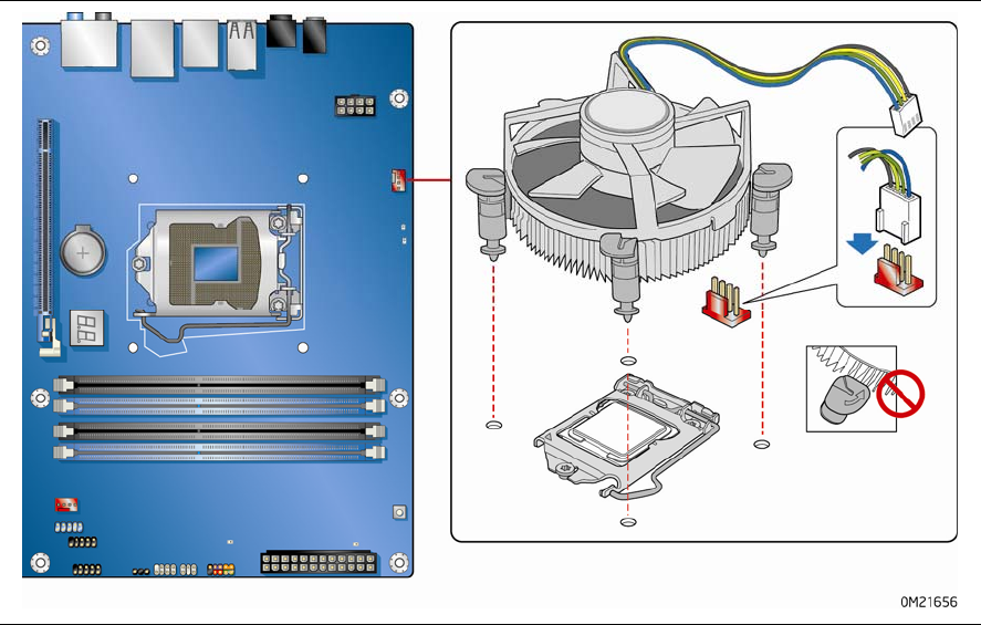 instructions on how to attach the processor fan heat sink to the Desktop Board, refer