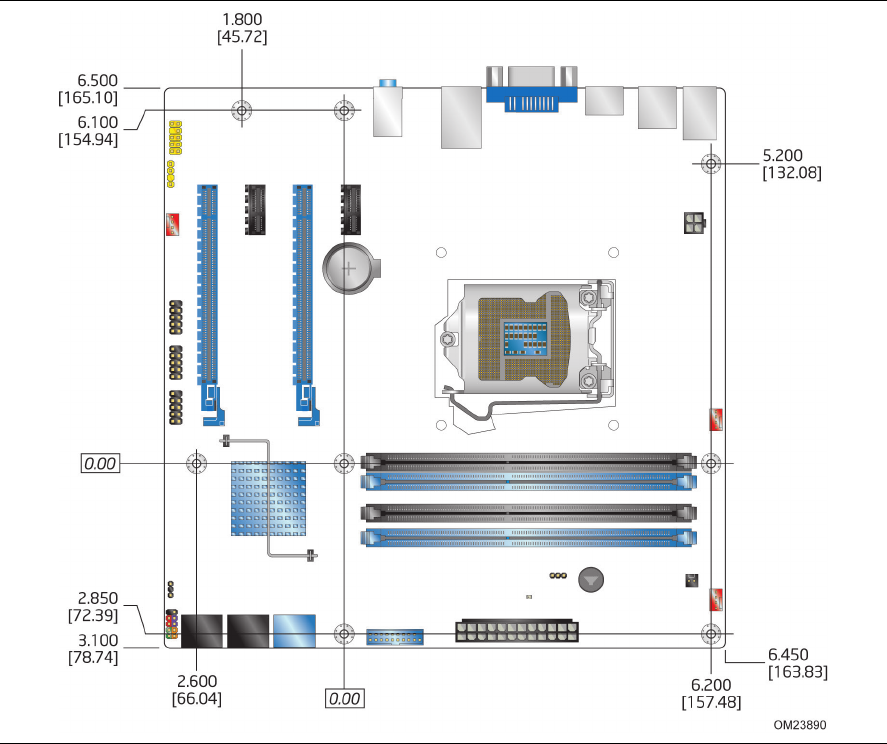 [243.84 millimeters by 243.84 millimeters]. Location of the I/O connectors and