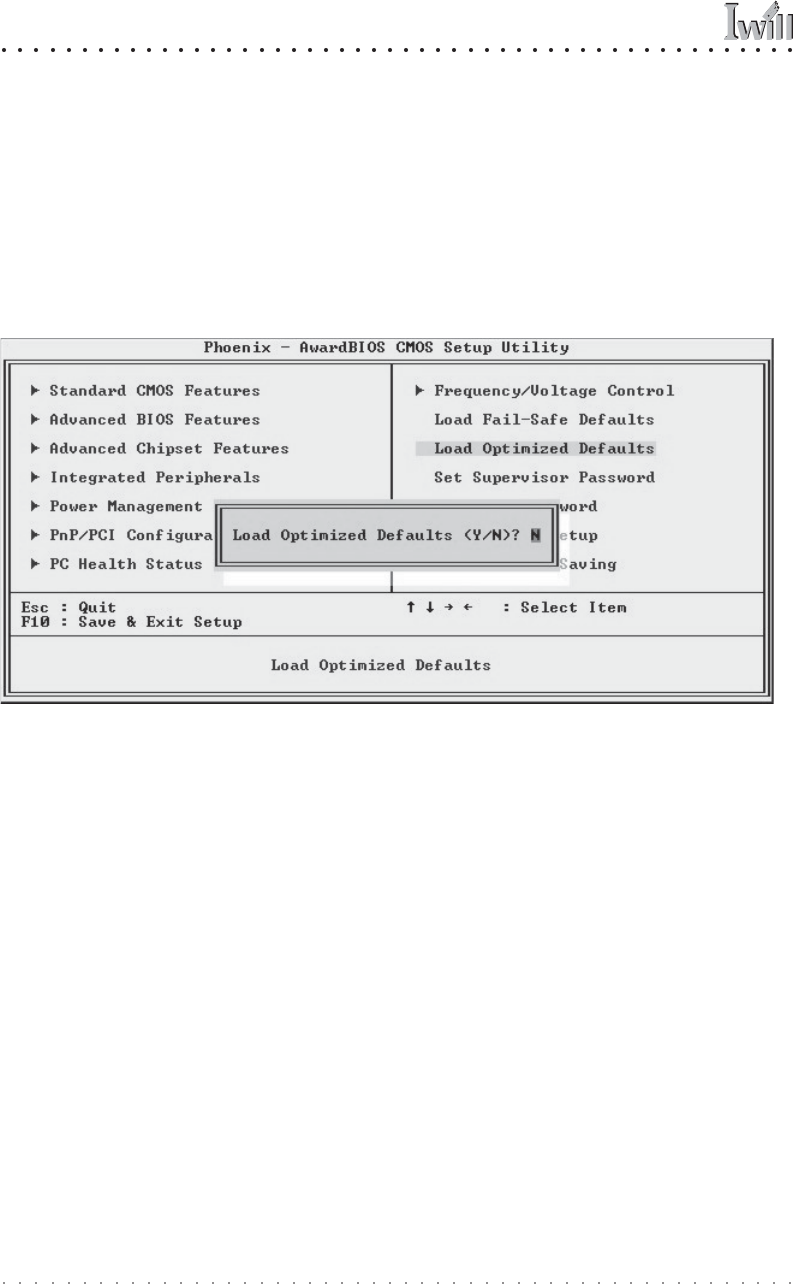 1. Select the “Load Optimized Defaults” item.