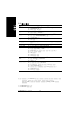 한국어 2-11 Save & Exit Setup Italiano “Y”를 입력하면 설정 유틸리티를 종료하고, 사용자가 설정한 값을 RTC CMOS 에 저장합니다. “N”을 입력하면, 설정 유틸리티로 되돌아갑니다. 2-12 Exit Without Saving Deutsch “Y”를 입력하면 사용자가 설정한 값을 RTC CMOS 에 저장하지 않고 설정 유틸리티를 종료합니다. “N”을 입력하면, 설정 유틸리티로 되돌아갑니다.