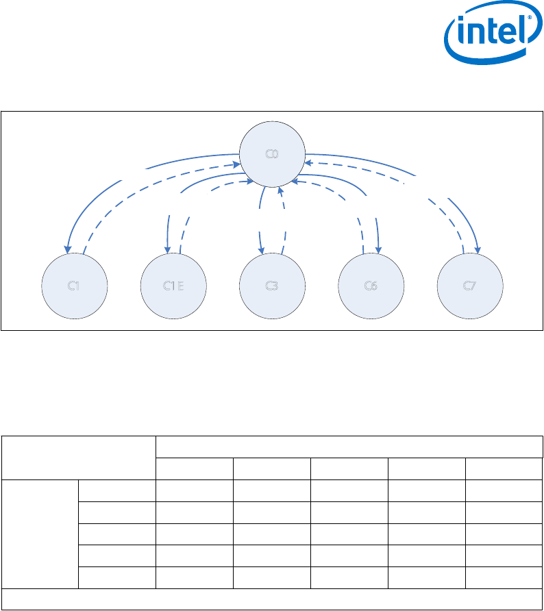 by the processor. For thread and core C-states, a transition to and from C0 is required