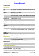 User’s Manual 2. Move between items and select values by using the arrow keys. Modify the selected field the PgUP/PgDN keys. For information on the various options, press key. Option Description Power Management Choose Disable, User Define, Min Saving or Max. Saving. “User Define” – Lets you specify when the HDD and system will shut down “Min Saving” - Predefine timer value of 4-12 min.