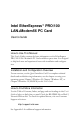 Intel EtherExpress™ PRO/100 LAN+Modem56 PC Card User’s Guide How to Use This Manual This Users Guide contains the latest information on the EtherExpress PRO/100 LAN+Modem56 PC Card available at press time. It is designed to help both new and experienced users with installation and configuration. Installation and Configuration Overview For an overview, see the Quick Installation Card.