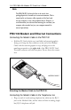 Hardware Installation 1-7 Caution The PRO/100 PC Card will not work with digital telephone lines or digital PABX systems. The adapter hardware will protect your modem against damage from inadvertent connection to a digital line. TRANSMIT/RECEIVE (YELLOW) TELEPHONE CABLE CARRIER DETECT (GREEN) MODEM CABLE Connecting the Telephone Cable to the Modem Cable. Connecting the Ethernet Adapter Cable to the PRO/100 Hold the PC Card with the top facing upward.
