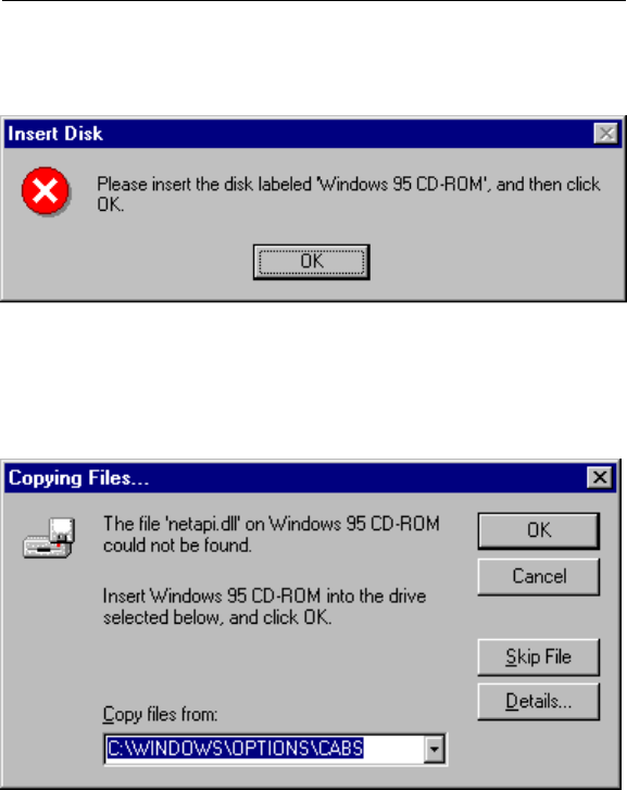 8 At the Copying Files... screen, specify the path to the Windows 95